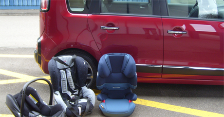 Im Test hat am meisten der geräumige und mit Schiebetüren ausgestattete Peugeot 807 überzeugt. Die beiden Renaults Grand Scenic und Kangoo können beim Kindersitzeinbau auf der Rücksitzbank mit kleinen Abstrichen ebenfalls überzeugen. Beim Citroen C3 Picasso und Ford Mondeo sind die Sicherheitsgurte zu kurz geraten, was zur Abwertung führt. "Die Montage einer Babyschale erfordert bei beiden einen Mehraufwand", erklärt Steffan Kerbl (Techniker des Clubs). Die ungünstig geformte und schmale Sitzfläche des Ford C-Max kann bei Kindersitzen der Gruppe 1 dazu führen, dass der Kindersitz nicht gut am Fahrzeugsitz aufliegt. Der recht geräumige Toyota Verso muss sich die schlechte Zugänglichkeit der Isofix-Verankerungen vorwerfen lassen. Soll im VW Golf ein Isofix-Kindersitz mit Top-Tether montiert werden, geht dieser Zusatzgurt quer durch den Kofferraum und nimmt so wertvollen Platz weg. Dass es anders geht, zeigen Opel (Insignia mit 4 Türen), Seat und Peugeot 5008, die den Verankerungspunkt für den Top-Tether oben auf dem Rücksitz integriert haben. Dadurch bleibt der vollständige Kofferraum erhalten.