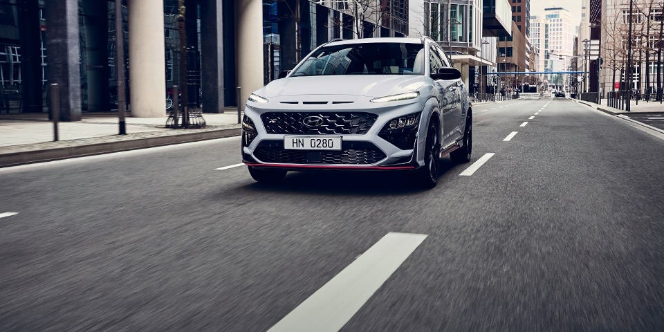 Der Kona N verfügt über einen 2.0-Liter-Turbomotor und ist mit einem „nassen“ 8-Gang-Doppelkupplungsgetriebe (N DCT) ausgestattet, das die Kraft an alle vier Räder weiterleitet. Mit Unterstützung eines neuen Leistungspakets wurde der aus dem i30 N bekannte Motor auf 280 PS aufgerüstet. Das maximale Drehmoment wurde auf 392 Nm angehoben. Das neue N DCT-Getriebe bietet eine Reihe von Funktionen. Der Fahrer kann entweder mit den Schaltwippen auf beiden Seiten des Lenkrads oder mit dem Schalthebel in den manuellen Modus wechseln und die Gänge schalten. Zudem ermöglicht das Getriebe drei neue Leistungsschaltfunktionen: „N Grin Shift“ (NGS), „N Power Shift“ (NPS) und „N Track Sense Shift“ (NTS). Dadurch ergeben sich spezielle Schaltlogikmanagements. Wenn beispielsweise NPS verwendet wird, während die Launch Control aktiv ist, ist es möglich, das potente Mini-SUV in 5,5 Sekunden von 0 auf 100 km/h zu beschleunigen. Die Höchstgeschwindigkeit beträgt 240 km/h.
