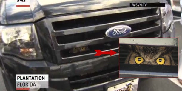 Die Fahrerin glaubte zunächst, dass sie ein kleines Tier überfahren hatte und fuhr einfach weiter. Erst am nächsten Tag machten sie andere Verkehrsteilnehmer auf den blinden Passagier mit den riesigen gelben Augen aufmerksam. Die eingeschüchterte Eule saß zwischen Kühlergrill und Motor. Da sie eingeklemmt war, musste sie aus ihrer misslichen Lage befreit werden. Nach einem kurzen Check stellte sich heraus, dass das gefiederte Tier völlig unverletzt war und in Freiheit entlassen werden konnte.