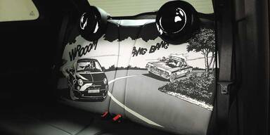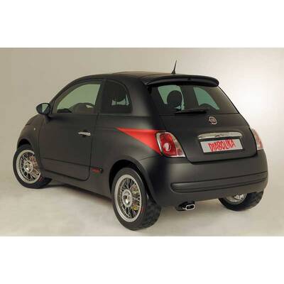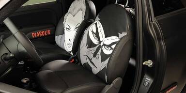 Der diabolische 500 entstammt der Feder der Designer von StudioTorino und wurde zusammen mit dem Comic-Buch Verlag Mycrom umgesetzt. Letzteres erklärt vor allem das Interieur des Diabolica, in dem es von Comic-Art nur so wimmelt. Trotz Retro-Design (Speichenfelgen!) und aggressiven Designelementen nimmt man dem "geschwärzten" 500 sein Bad Boy Image nicht ab - macht aber nichts: Der Diabolica ist vielmehr der unumstößliche Beweise, dass der Cinquecento schlichtweg ein durch-und-durch "gutes" Auto ist, den man auch mit Nietenarmband und Klappmesser nicht auf die dunkle Seite der Straße drängen kann.