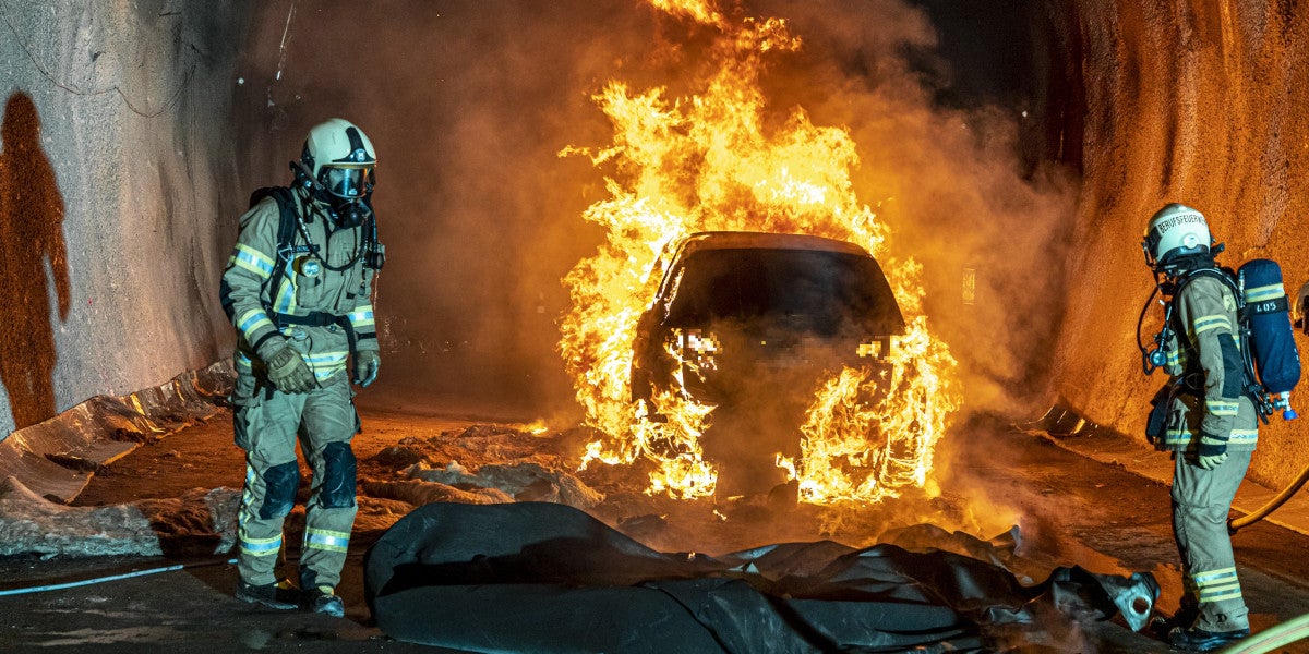 Bilder von brennenden E-Fahrzeugen machen immer wieder die Runde und verunsichern. Österreichische Tunnel halten die Brandlast von batterieelektrisch betriebenen Pkw jedenfalls aus, ergaben Brandversuche unter der Leitung der TU Graz im "Zentrum am Berg" im obersteirischen Eisenerz. Um zu wissen, wie das Risiko in Parkgaragen bzw. bei E-Bussen und -Lkw ist, brauche es laut den Experten jedoch dringend umfassende Realbrandversuche.