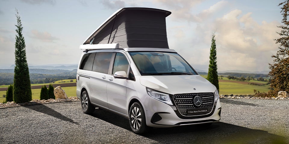 Eine der Nutzungsmöglichkeiten ist das Thema Reisemobil, wobei die V-Klasse vom Vito profitiert. Ganz frisch ist die face- und technikgeliftete Marco Polo-Variante namens Horizon, ein Allrounder, der sowohl im Alltag als auch in der Freizeit eingesetzt werden kann. Seine Vielseitigkeit besteht unter anderem darin, dass er entweder mit sieben Sitzen oder mit fünf Liegeplätzen konfigurierbar ist.