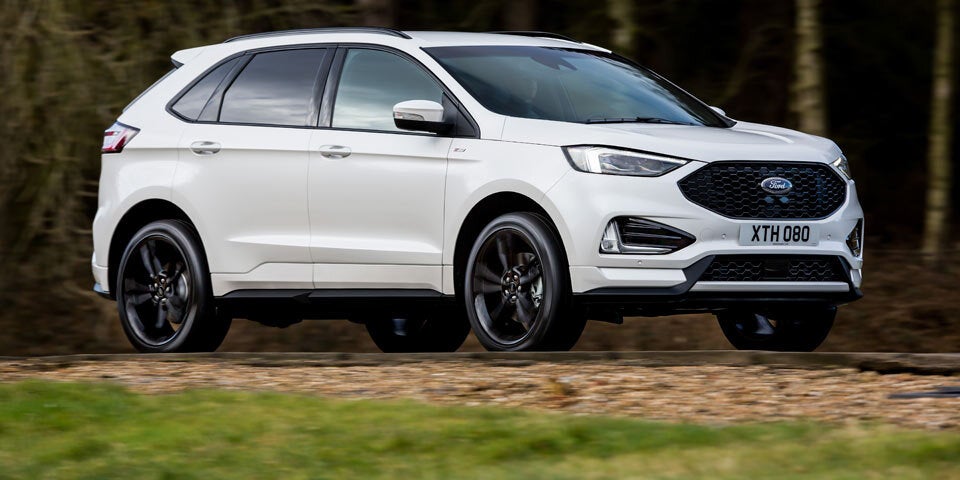 Beim Motor vertraut Ford in Europa weiterhin auf den EcoBlue-Vierzylinder-Diesel, der für den „neuen“ Edge in Österreich zunächst in der starken Vaiante zur Verfügung steht, und über einen SCR-Kat und AdBlue-Einspritzung verfügt. Der Biturbo mit 2,0 Litern Hubraum entwickelt nun eine Leistung von 238 PS – bislang waren es 210 PS. Dieser Vierzylinder tritt erstmals mit zwei verschieden großen Ladern an. Der neue Top-Motor wird ausschließlich mit der neuen Achtgang-Automatik (Wandler) und intelligentem Allradantrieb ausgeliefert. Der Normverbrauch wird mit 7,1 Liter auf 100 km angegeben. Neben diesem Biturbo-Aggregat hat Ford in einigen Ländern auch einen 2,0 Liter großen EcoBlue-Diesel mit 190 PS (bislang: 180 PS), der den Allradantrieb mit einem serienmäßigen Sechsgang-Schaltgetriebe verbindet, im Programm. In Österreich ist der schwächere Selbstzünder (vorerst) nicht zu haben. Bei der Fahrdynamik hebt sich die ST-Line ebenfalls von der komfortabler abgestimmten Vignale-Version ab. Sie verfügt über eine auf die sportliche Gangart abgestimmte Radaufhängung. Die optionale Adaptiv-Lenkung passt die Lenkübersetzung kontinuierlich der aktuellen Geschwindigkeit an.
