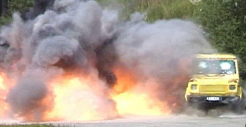 Nachdem sich der Rauch verzogen hat, wird der Wagen unter die Lupe genommen. Erste Überraschung: Die Fahrertür lässt immer noch problemlos öffnen. Zweite Überraschung: Der Innenraum hat nicht den geringsten Kratzer (Bis auf einen etwa 3 Zentimeter langen Riss im Leder des Fahrersitzes. - Der sei aber schon vor dem Test passiert.).
