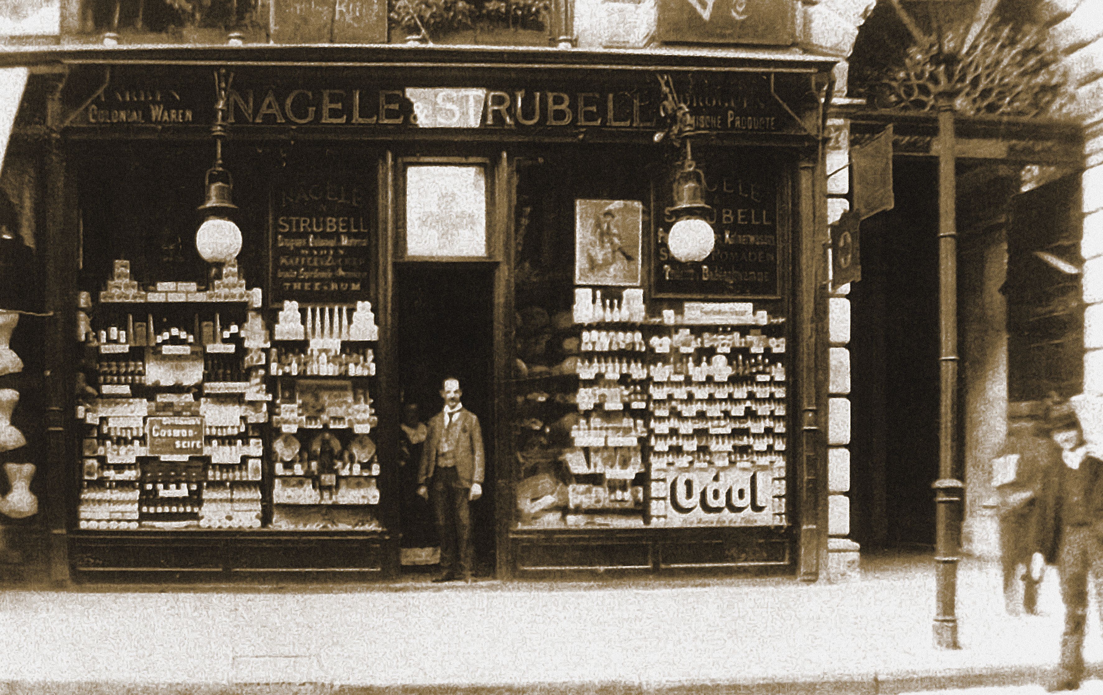 Was 1880 als Gemischtwarenhandlung „Zum Genfer Kreuz“ am Wiener Graben 27 begann, entwickelte sich rasch zur bevorzugten Adresse der feinen Gesellschaft. Gründer August Nägele und Moritz Richard Strubell erkannten früh die Liebe der Wienerinnen und Wiener zum Luxus. Neben Pudern, Cremes und Mundwasser gehörten auch handgezogene Kerzen aus eigener Manufaktur sowie Eaux de Colognes zum Sortiment. Bald trug das Haus den prestigeträchtigen Titel „K. u. K. Hoflieferant“ – Auszeichnung und Verpflichtung zugleich.