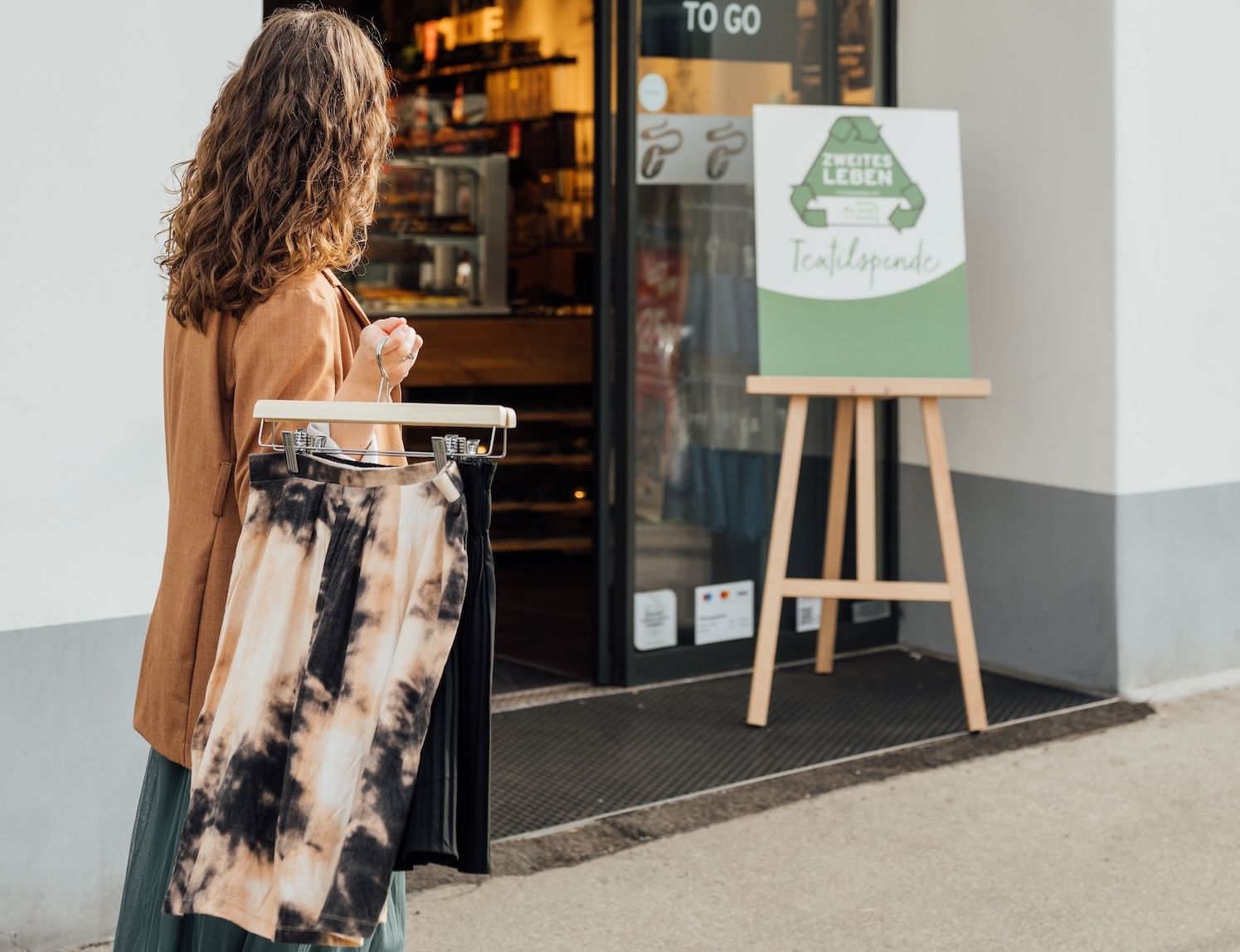 Eine runde Sache für die KundenTchibo ist seit jeher bekannt dafür, die Bedürfnisse der Kund*innen in den Mittelpunkt zu stellen:1. Der Schrank ist voll, die Kleidung gut erhalten, wie geht man damit möglichst verantwortungsvoll um?2. Einfach und unkompliziert ist die Spende in 120 Tchibo Filialen möglich. Bei einer Befragung bestätigen 50% der Teilnehmerinnen und Teilnehmer, dass sie die Abgabe in ihrer Stammfiliale als sehr praktisch empfinden, da sie dort ohnehin regelmäßig einkaufen oder Kaffee trinken gehen.3. Danach werden die Textilien an die Re-Use Austria Partnerbetriebe übergeben, die die Spendenware bewerten, sortieren und aufbereiten. Im Sinne der Sozialwirtschaft ist der Zustand der Textilien enorm wichtig. Kaputtes muss aufwendig heraussortiert und letztendlich mit Kostenaufwand entsorgt werden. Kaum getragene oder gut gepflegte Textilien jedoch bleiben im Kreislauf und finanzieren diesen so wichtigen Part der textilen Kreislaufwirtschaft.