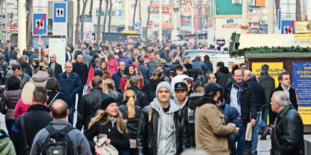 Riesengedränge auf der Wiener Mariahilfer Straße. Am Samstag nutzten Zehntausende das Advent-Wochenende, um auf der Einkaufsmeile Jagd auf Geschenke zu machen.