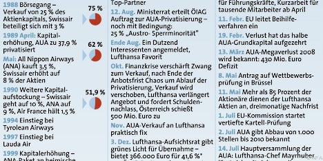Die Austrian Airlines (AUA) ist ab September Teil des deutschen Lufthansa-Konzerns. Für die jahrzehntelang teilstaatliche österreichische Fluggesellschaft war der Verkauf an die Deutschen überlebenswichtig. Die Lufthansa wiederum steigt mit dem Zukauf zur größten europäischen Fluggesellschaft auf.