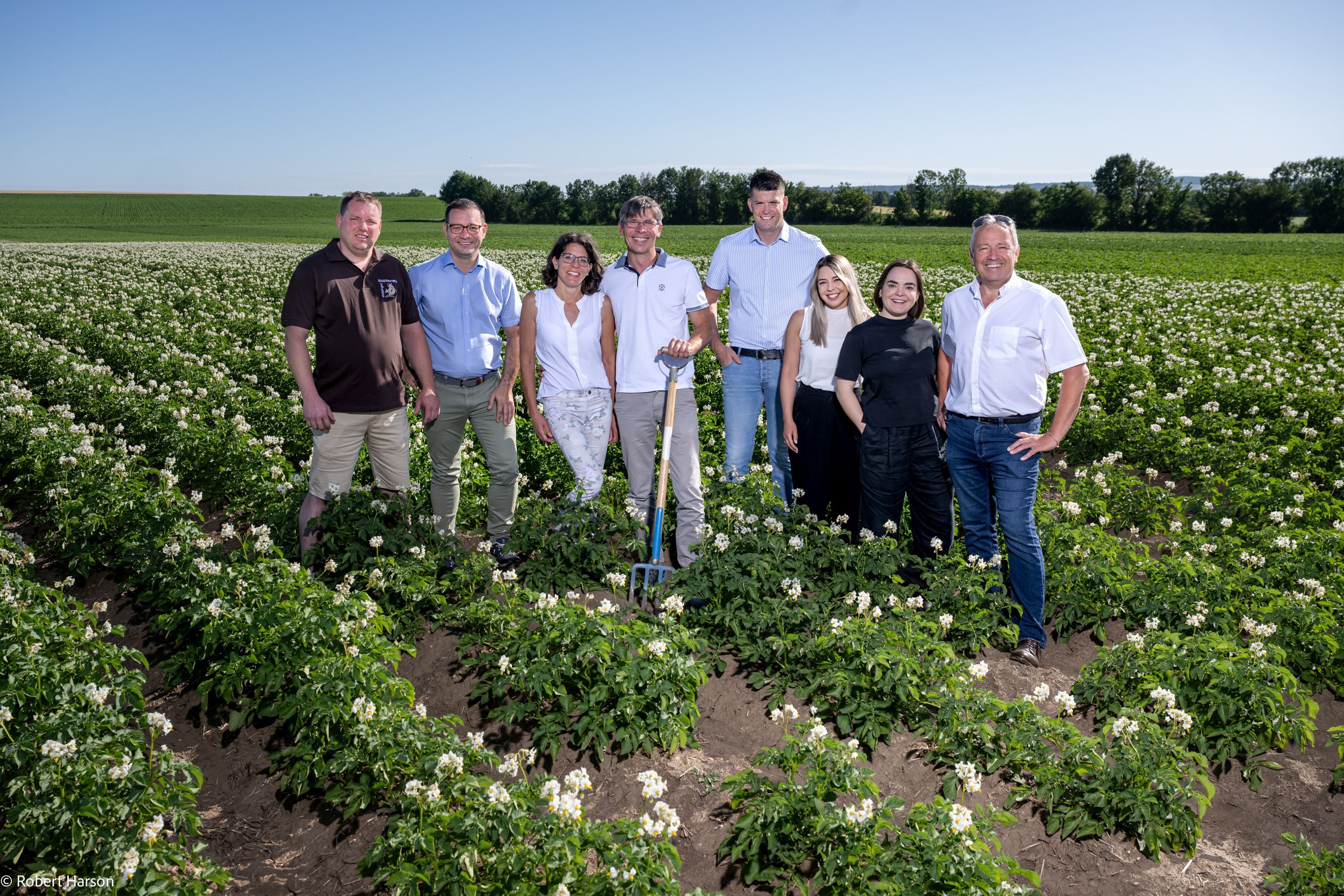 (v.l.n.r.): Michael Buxbaum (Geschäftsführer der Niederösterreichischen Saatbaugenossenschaft NÖS), Benjamin Einfalt (BILLA Einkäufer), Susanne Kirchmaier (Züchterin bei NÖS) und Johann Regner (REWE Bereichsleiter Obst und Gemüse) freuen sich über die neue „Da komm‘ ich her!“-Erdäpfelsorte „Benjamin“.