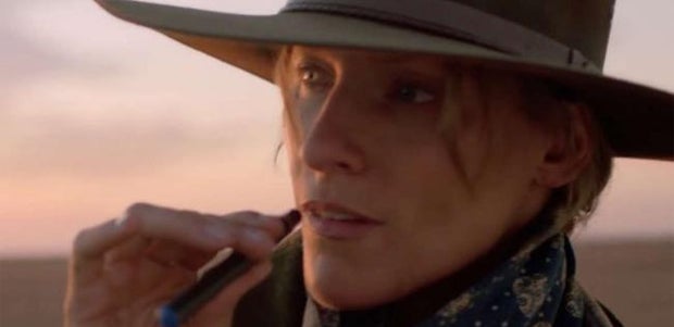 Darin hält ein Hubschrauber eine Herde Rinder in Schach. Der Pilot hat wegen des aufgewirbelten Staubes ein Tuch vorm Gesicht. Als der Helikopter landet, zieht der Pilot runter und siehe da, es ist eine Frau - eben mit E-Zigarette.