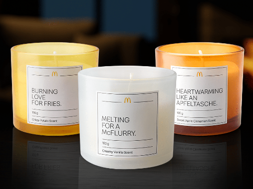 Die Duftkerzen versprechen jedenfalls ein einzigartiges Erlebnis. Während die "Apfeltasche"-Kerze einen warmen Duft nach Apfel und Zimt verströmt, sorgt auch die "McFlurry"-Kerze mit feiner Vanillenote für das perfekte Wohlfühl-Gefühl. Besonderes Aufsehen erregt allerdings die "Pommes"-Kerze mit dem herzhaften Duft frisch gebratener Kartoffeln.