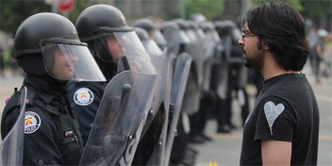 Am Rande des Gipfeltreffens kam es zu gewaltsamen Ausschreitungen. Randalierer setzten mindestens drei Streifenwagen in Brand und schlugen die Schaufenster einer Bank und mehrerer Geschäfte ein. Die Polizei nahm mehr als 400 Personen fest. Die Sicherheitskräfte setzten Schlagstöcke, Tränengas und Pfefferspray ein.