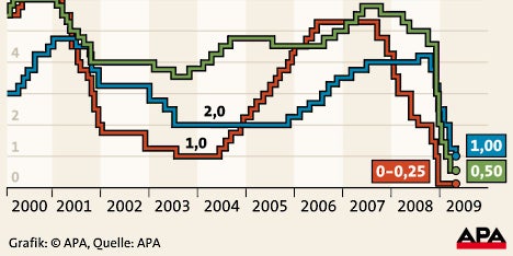 Die Zinsen für Konsumkredite seien bis August d.J. lediglich auf 5,25 Prozent gesunken, im April seien sie im Schnitt bei 6,625 Prozent gelegen, im April des Vorjahres bei 6,5 Prozent. Der hier relevante Sechs-Monats-Euribor sei dagegen von März 2008 bis Juli 2009 von 4,59 auf 1,21 Prozent gesunken. Stark gesunken seien dafür die Sparzinsen, bei Kapitalsparbüchern von 4,93 auf 1,75 Prozent zwischen Oktober 2008 und Juli 2009.