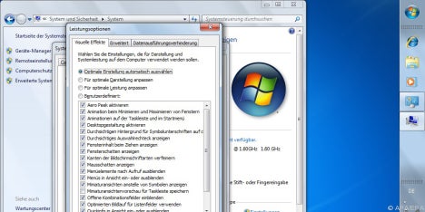 Für die Anpassung ans Netbook mit seinem kleinen Display und dem relativ schwachen Prozessor hat Gieseke dennoch Ratschläge. Er empfiehlt, die Auflösung des Displays zu verändern, um die Lesbarkeit zu verbessern: "Probieren Sie aus, welche für Ihre Zwecke geeignet ist und lesbare Ergebnisse liefert." Die ansehnlichen grafischen Spielereien in Windows 7 strengen den Prozessor an und kosten zusätzlich Strom, was sich negativ auf die Akkulaufzeit auswirkt. In den erweiterten Systemeinstellungen lassen sich diese Effekte ausschalten und dadurch Stromkosten sparen.