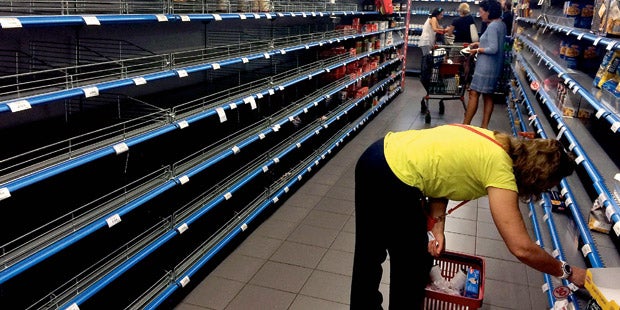 ■ Supermärkte leer. Die Schuldenkrise hat nun Auswirkungen auf die Grundbedürfnisse. Viele Supermarktregale bleiben leer. Der schockierende Fotobeweis (siehe oben): Eine Filiale direkt in Athen, Lebensmittel gibt es nur spärlich. Menschen drängen sich um die wenigen Produkte.