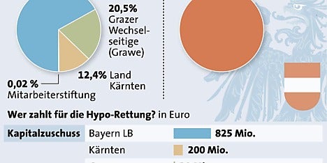 Demnach schießt der Bund bis zu 450 Mio. Euro zu, während von den Alteigentümern 1,05 Mrd. kommen: Der bisherige deutsche 67-Prozent-Eigentümer, die selbst vom Freistaat gestützte BayernLB, bringt 825 Mio. Euro auf, das finanziell angeschlagene Land Kärnten 200 Mio. Euro und die Grazer Wechselseitige 30 Mio. Euro.