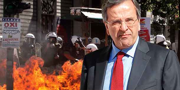 Binnen fünf Jahren hätten die Griechen mehr als ein Drittel ihres Lebensstandards verloren. Sein Land sei an „der Grenze dessen, was wir unserer Bevölkerung zumuten können“, sagte Samaras zum Handelsblatt. Unerwartet lobte er die deutsche Bundeskanzlerin Angela Merkel. Sie habe den „richtigen Ton gefunden, als sie sagte, dass ihr das Herz blute“. Deshalb lud er Merkel nach Athen ein und die Kanzlerin sagte prompt zu. Die Gewerkschaften wollen Merkel mit einer Großdemonstration empfangen.