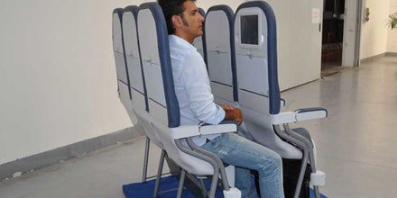 Ryanair & Co. jubeln über das neueste Produkt für Flugzeugkabinen. Die jetzt auf einer Messe präsentierten Stehsitze namens „SkyRider“ versprechen die maximale Nutzung des Flugzeuginnenraums. Statt durchschnittlich 76,2 cm Sitzabstand sind bei der neuen Bestuhlung nur mehr 58,42 cm notwendig. Der Clou: So passen bis zu 100 Passagiere mehr in einen Flieger.
