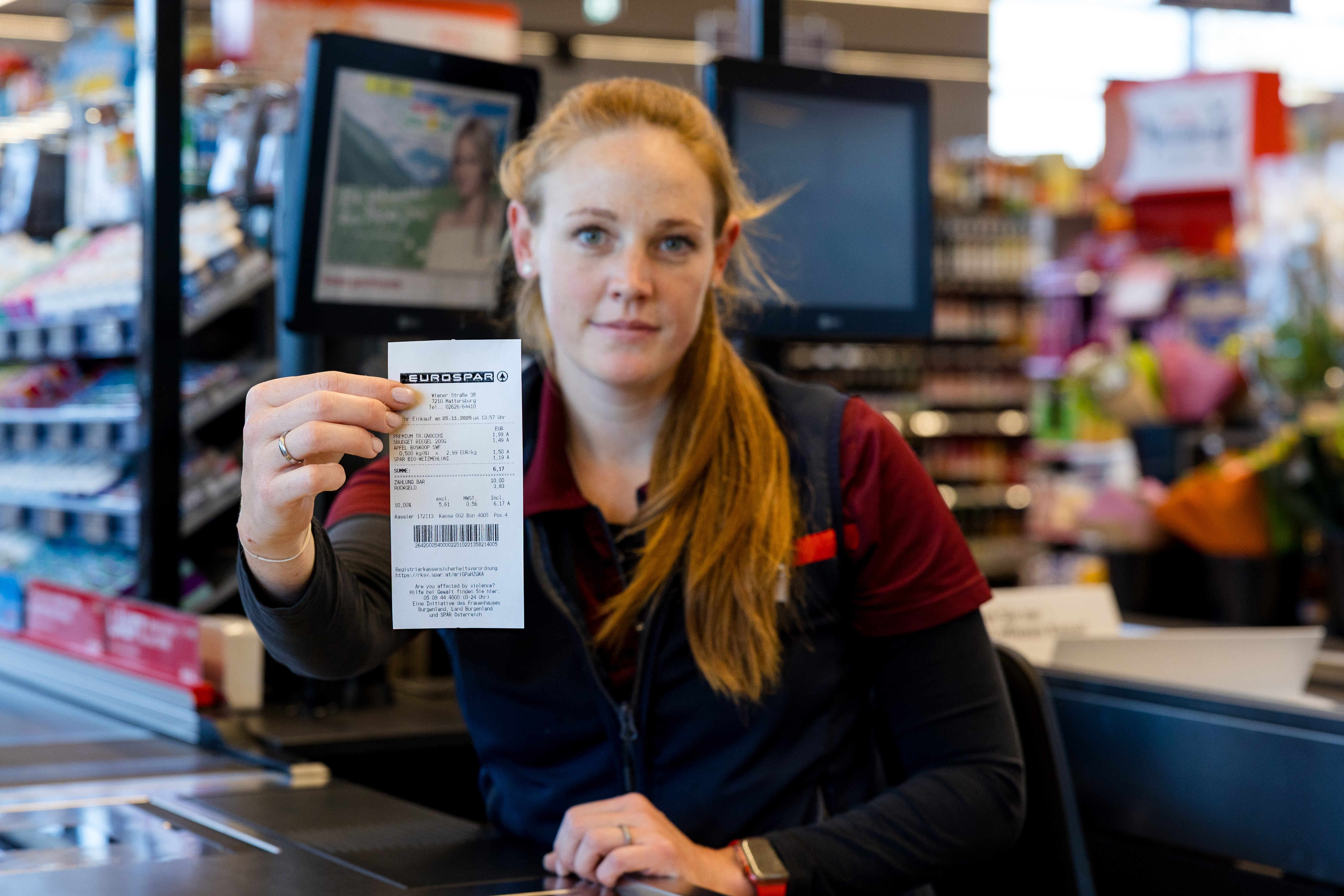 Mit jedem Kassabon ein starkes Zeichen: Spar informiert Kundinnen und Kunden über regionale Hilfsangebote im Rahmen der Initiative „16 Tage gegen Gewalt an Frauen“.