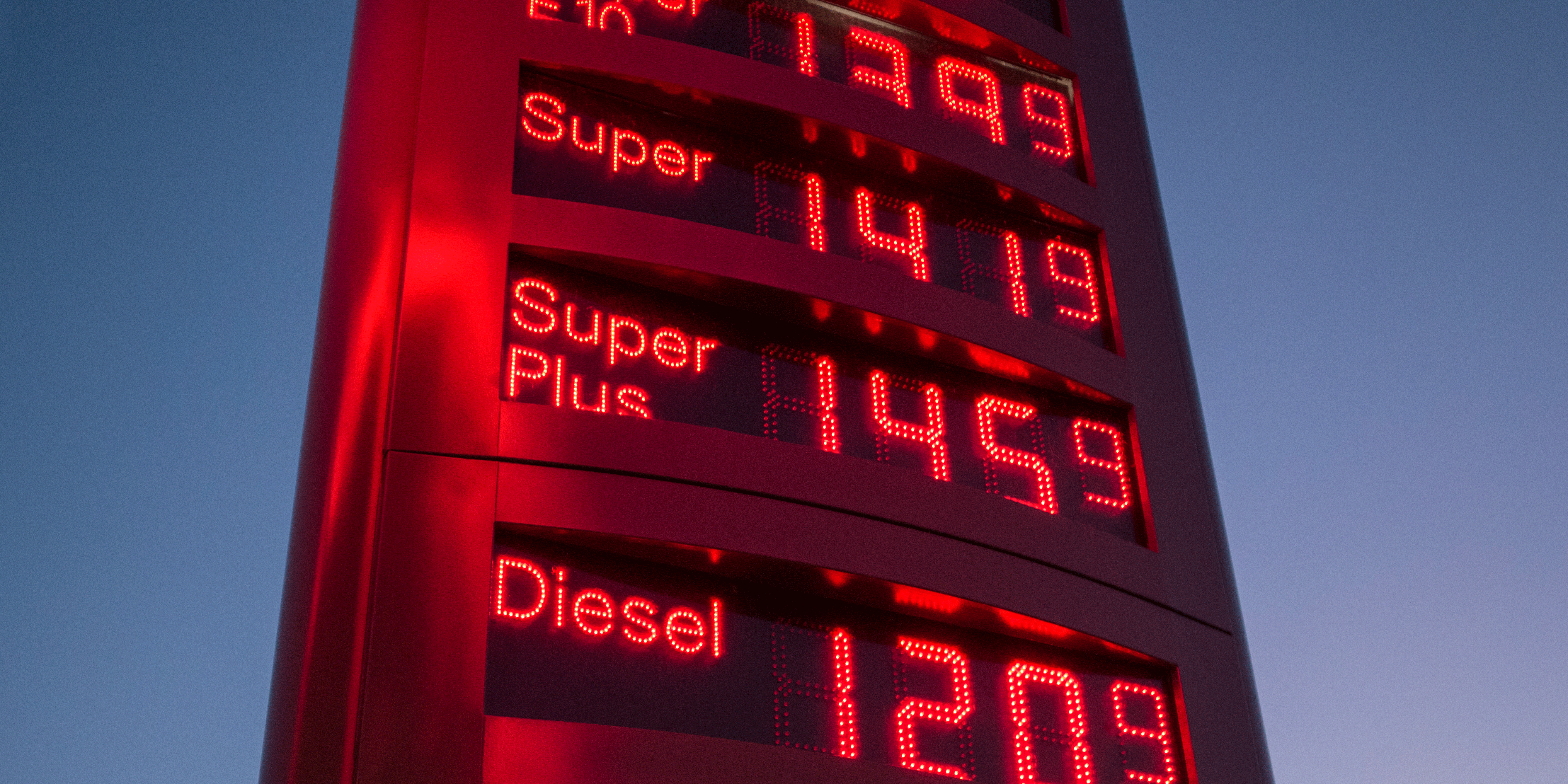 Diesel kostete im Mai 20 % mehr als vor einem Jahr, Benzin sogar 25 %.