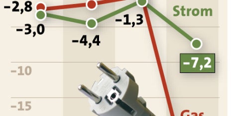 Über die ersten vier Monate sind in Österreich um 8,7 Prozent weniger Gas und um 3,9 Prozent weniger Strom verbraucht worden, sagt Regulator Walter Boltz. Allein die Industrie verbrauchte in den ersten vier Monaten 2009 um 13 Prozent weniger Elektrizität. Als Folge der Krise sind seit die Großhandelspreise bei Strom um 46 Prozent (Spot) und jene von Gas um 31 Prozent zurückgegangen; die Senkungen seien an die Industrie weitgehend weitergegeben worden, bei den Haushalten sei dies nur ungenügend der Fall gewesen.