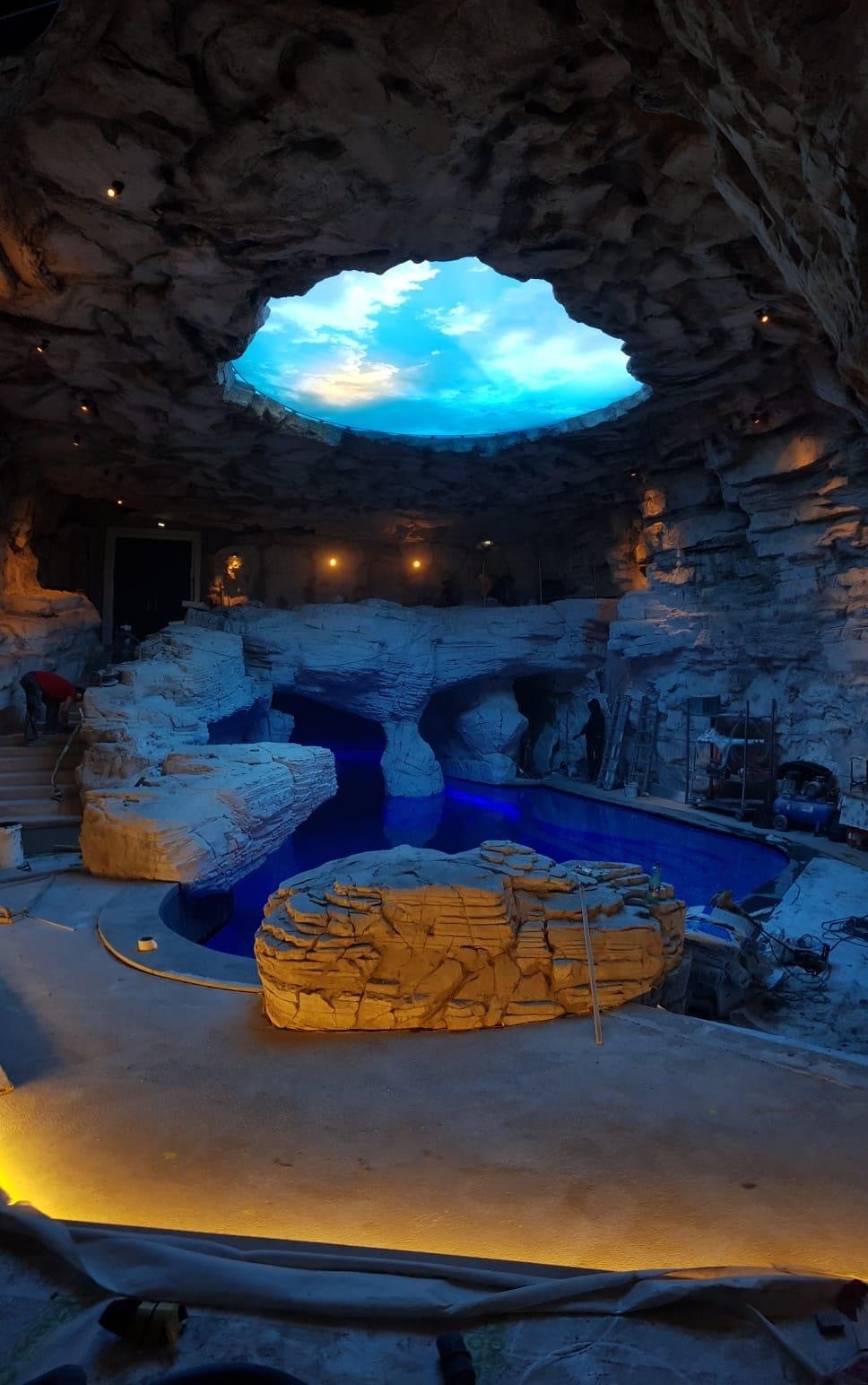 Die Grotte selbst besitzt laut Sima eine Spannweite von 14 Metern. Für den „blauen Traum“ hat er 2000 Quadratmeter Kunstfelsen verbaut. Kosten: 2 Millionen Euro.
