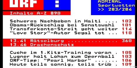 Drei Jahrzehnte später ist der Teletext - von Neuerungen wie dem Internet unbeschadet - weiter erfolgreich: Ganze 96 Prozent der Haushalte verfügen inzwischen über TV-Geräte, auf denen wöchentlich rund 1,9 Mio. Leser das ORF-Angebot nutzen.