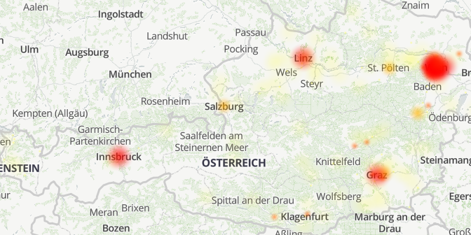 Bei A1 und Drei waren es mit 117 und 40 Meldungen deutlich weniger. Betroffen waren vor allem die Landeshauptstädte – besonders in Wien, Graz, Linz und Innsbruck hatten die User mit Ausfällen zu kämpfen.