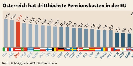 Allerdings weist der Nachhaltigkeitsbericht der EU-Kommission in einer Vorschau für 2060 lediglich einen Anstieg von 1,0 % des BIP bei den österreichischen Pensionsausgaben aus. Für Luxemburg, das 2010 nur mit 8,6 % Ausgaben für die Pensionen aufscheint, wird dagegen ein Anstieg um 15,3 % vorhergesagt.