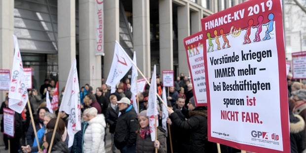 Nach fünf Runden haben die Tarifpartner in der Nacht auf Mittwoch die diesjährige Gehaltsverhandlung für die rund 73.000 Beschäftigten in den heimischen Kreditinstituten abgeschlossen. Die Mindestgrundgehälter werden rückwirkend mit 1.4. 2019 um 2,5 Prozent zuzüglich 14,50 Euro erhöht, das ist eine Erhöhung zwischen 2,8 bis 3,37 Prozent, hieß es Mittwochfrüh in einer Aussendung.