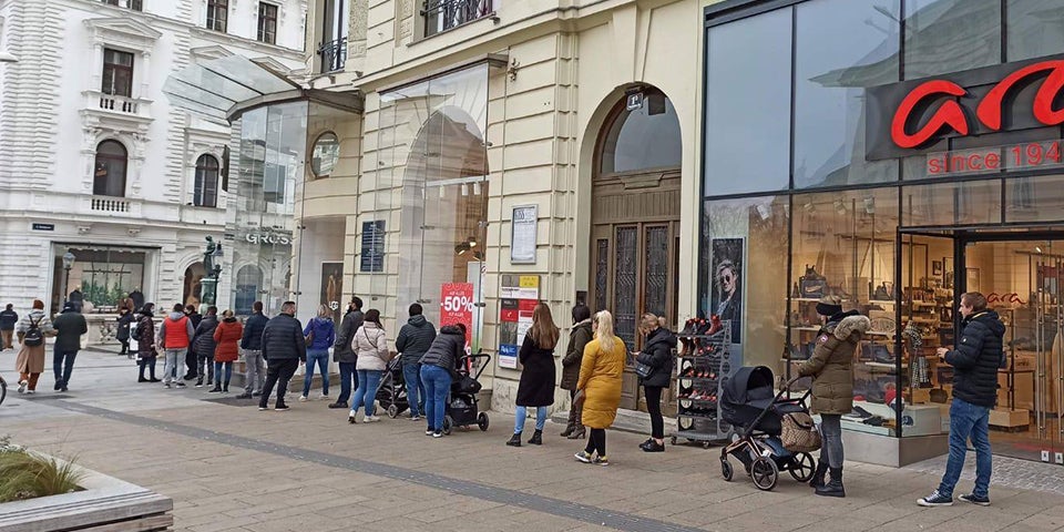 Besonders verlockend war offenbar das "Minus-50-Prozent"-Angebot des Schuhgeschäfts "Humanic". Auch hier stellten sich dutzende Shoppingwillige an, um das perfekte Schnäppchen zu machen. Die Kritik ließ nicht lange auf sich warten. Muss das sein, dass man trotz Corona-Explosion in Österreich mit solchen Aktionen riskiert noch mehr Menschen miteinander in Kontakt zu bringen?