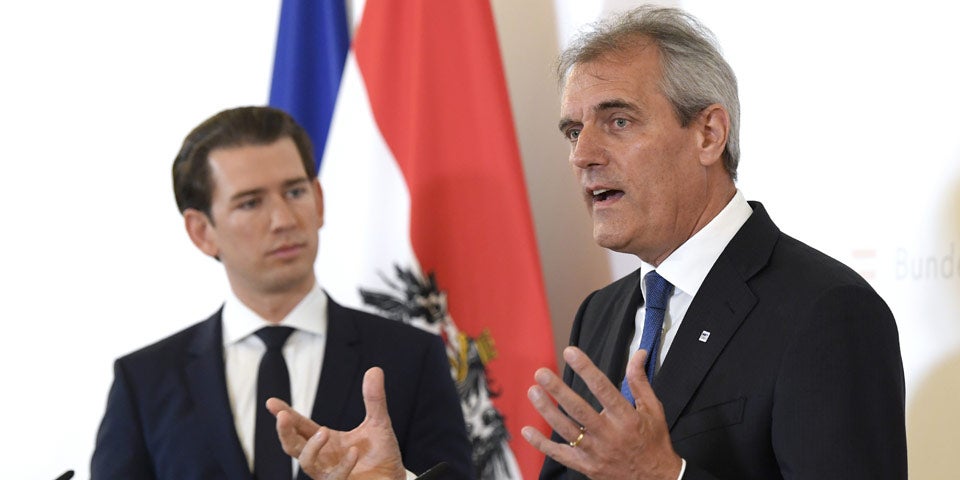 Der Öl- und Gaskonzern OMV will sein Finanz-, Personal- und IT-Management für den ganzen Konzern künftig in der Zentrale in Wien zusammenfassen. "Die erfreuliche Nachricht ist, dass wir über 250 hoch qualifizierte Mitarbeiterinnen und Mitarbeiter an den Standort Österreich bringen werden", sagte OMV-Chef Rainer Seele (rechts) am Freitag bei einer gemeinsamen Pressekonferenz mit Bundeskanzler Sebastian Kurz.