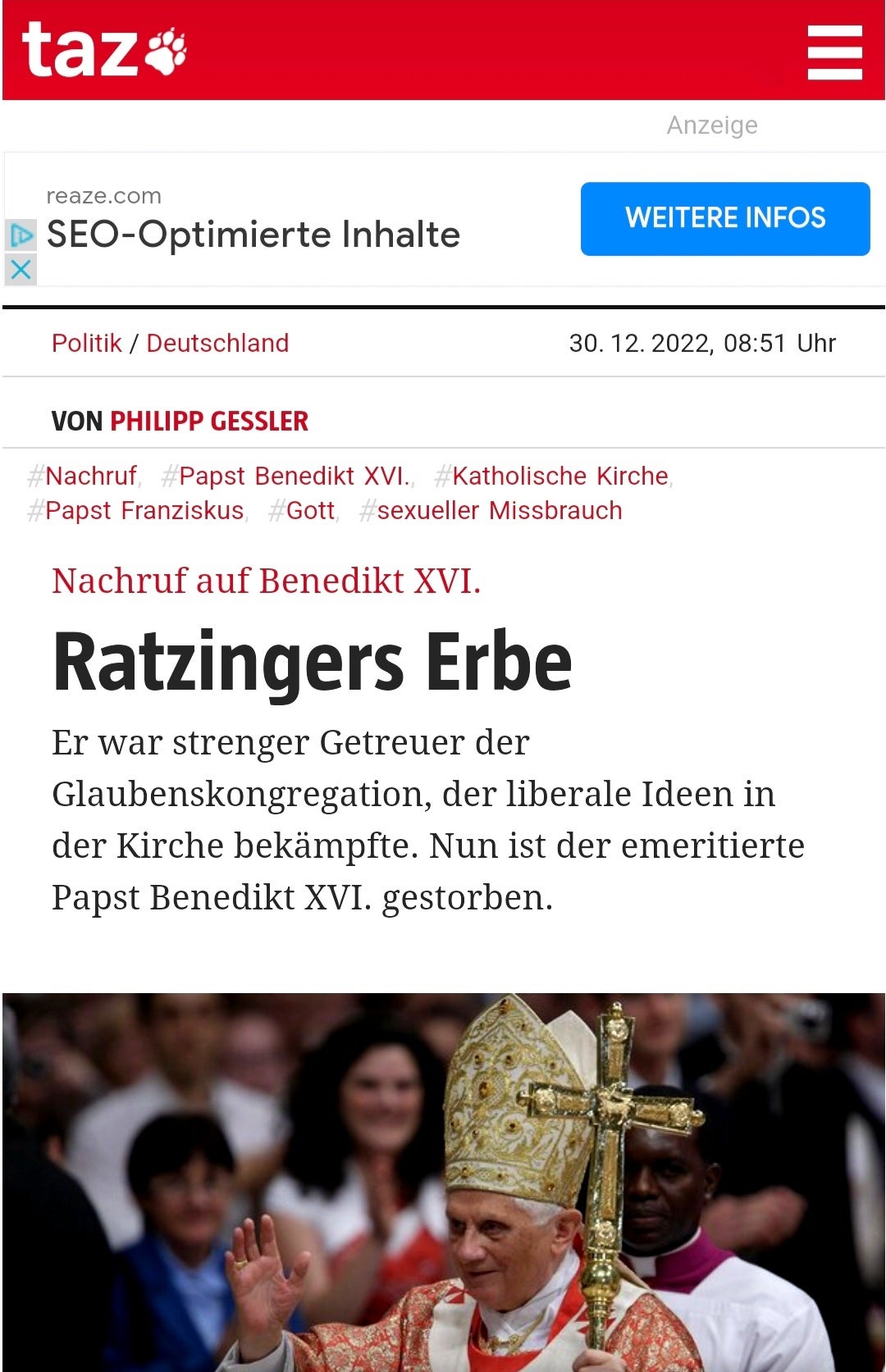 Tagesaktuelle Inhalte verbreitet die Zeitung mit Hauptsitz in Berlin künftig vor allem über die Website. Die samstags erscheinende "wochentaz" wird weiterhin gedruckt verfügbar sein.
