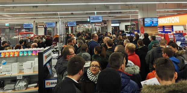 In den Filialen der Elektronikketten Saturn und Media Markt standen Schnäppchenjäger Schlange.
