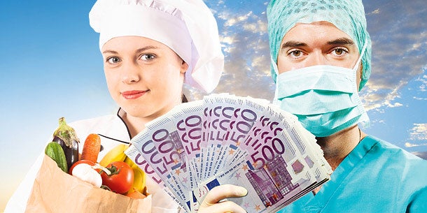 Absolute Spitzenreiter bleiben die Mediziner. Ihnen werden Jahr für Jahr im Schnitt 68.392 Euro überwiesen. Nur Verkaufs- (67.211 Euro) und Produktionsleiter (61.121 Euro) können ihnen annähernd das Wasser reichen.