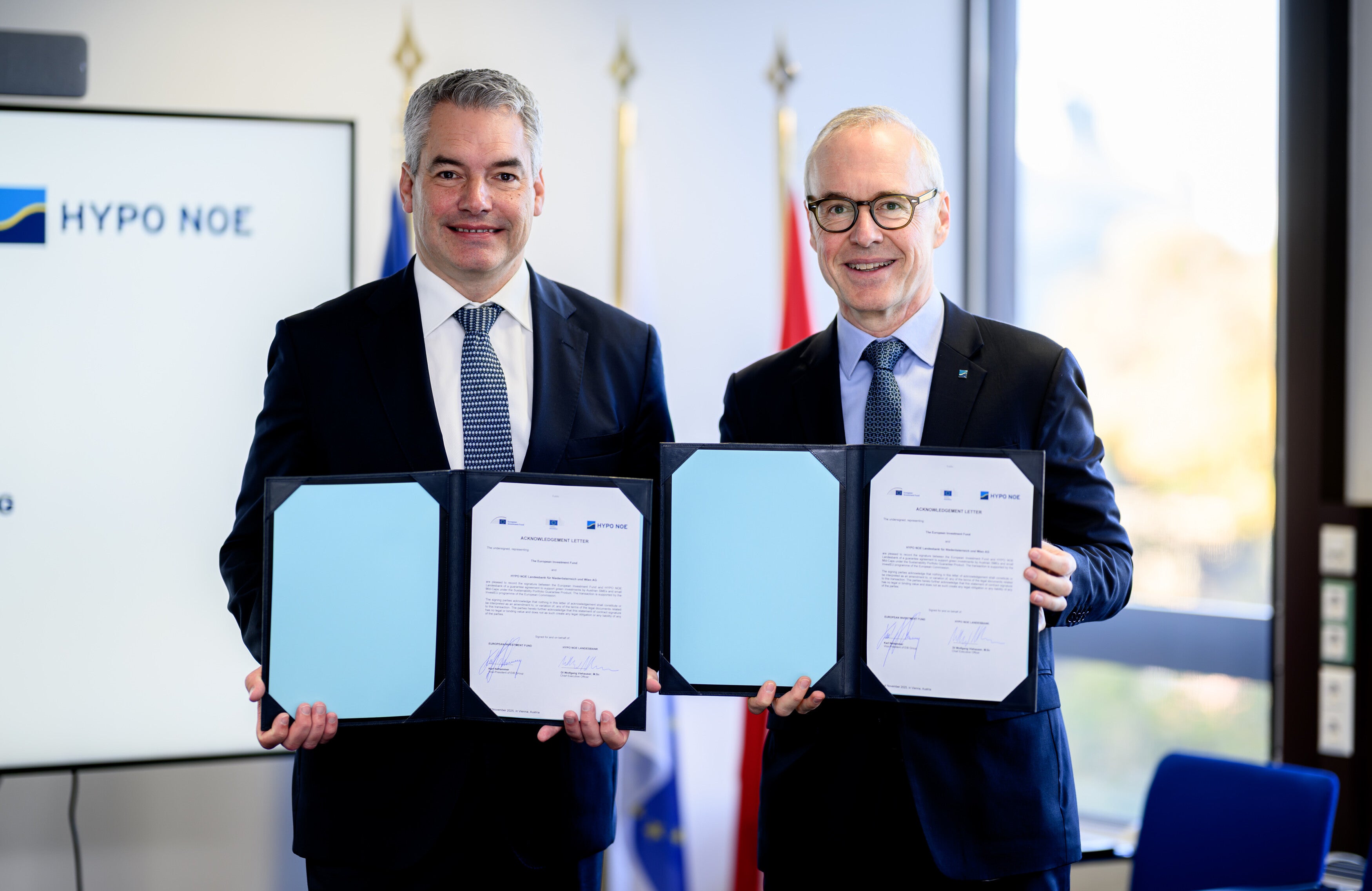 Die EIB-Gruppe, wo Ex-Kanzler Karl Nehammer jetzt Vizepräsident ist, und die HYPO NOE Landesbank für Niederösterreich und Wien haben eine Garantie unterzeichnet, die Investitionen österreichischer Firmen in Höhe von 43 Mio. Euro ermöglicht.
