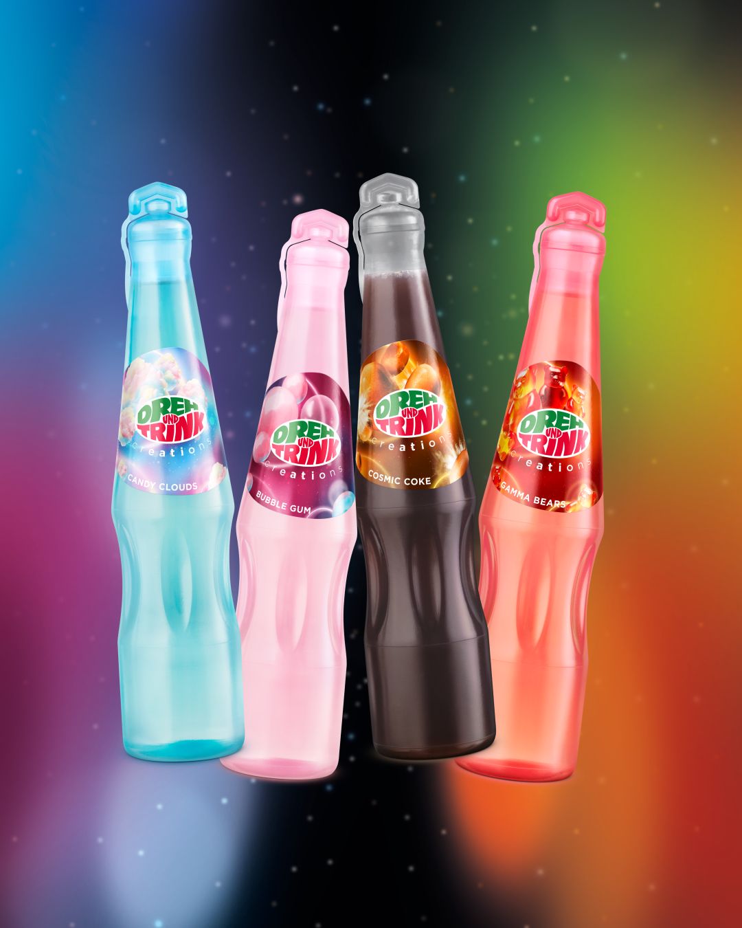 Die neue Produktlinie heißt "Dreh und Trink CREATIONS". Es sollen "galaktische Geschmacksrichtungen" kommen: Cosmic Coke, Gamma Bears, Candy Clouds und Bubble Gum.