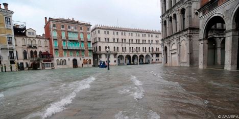 Venedig droht wegen des Treibhauseffekts der Untergang. Dies geht aus einer Studie von Laura Carbognin hervor, einer Forscherin am Institut für Meereswissenschaften des italienischen Forschungsinstituts CNR. Das als geniales Mittel gegen den steigenden Meeresspiegel gepriesene Schleusensystem "MOSE", an dem seit einigen Jahren gearbeitet ist, dürfte nicht genügen, um die weltberühmte Stadt zu retten, meinte Carbognin.