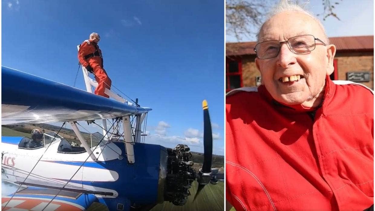 Mit seinen 95 Jahren hat Ivor Button einen neuen Weltrekord im "Wing Walking" aufgestellt. Bei diesem doch eher ungewöhnlichen Hobby steht Button auf der Tragfläche eines Flugzeuges und geht auf den Tragflächen hin und her. Natürlich ist Button bei dem „Spaziergang“ befestigt.