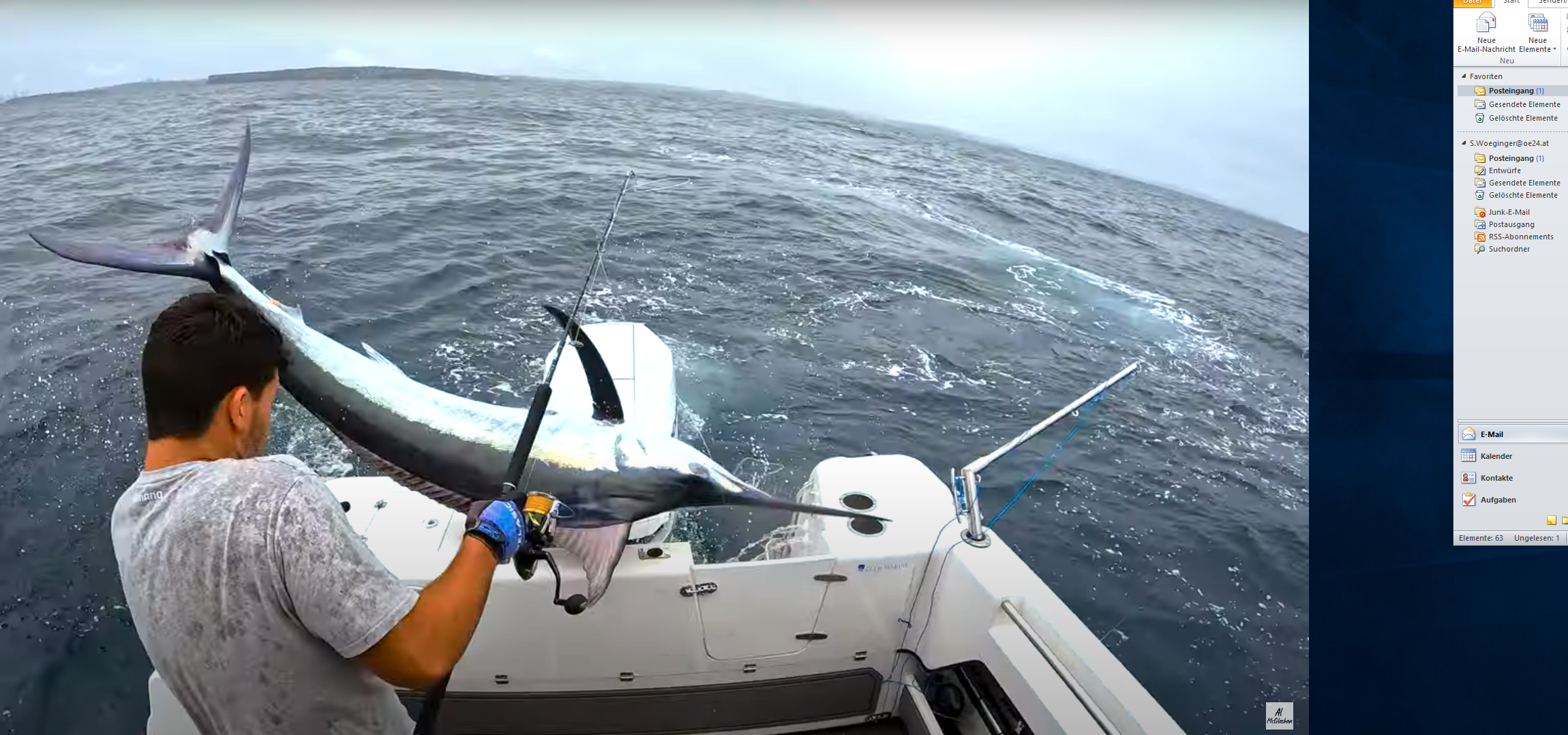 Während eines Angel-Ausflugs wäre ein Mann beinahe von einem Speerfisch aufgespießt worden. Das ganze hält er auf Video fest und zeigt, wie riesig ein solcher Marlin eigentlich ist.