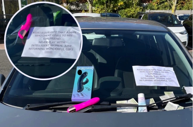 Eine aufgebrachte Mutter soll sich bittersüß an ihrem Ex-Freund, welcher sie angeblich betrogen hat, gerächt haben. Sie gab ihm ein Geschenk zurück und klebte es auf seine Windschutzscheibe. Im Internet geht das Bild deshalb durch die Decke, da es sich um einen Vibrator handelt.