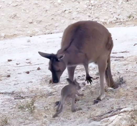 Haarige Szenen für ein Baby-Känguru. Nachdem es aus dem Beutel der Mutter gefallen war, versuchte das kleine Tier verängstigt wieder in den Beutel zu kommen. Auch die Mutter war offenbar gestresst und versuchte das Kleintier wieder in Sicherheit zu bringen.