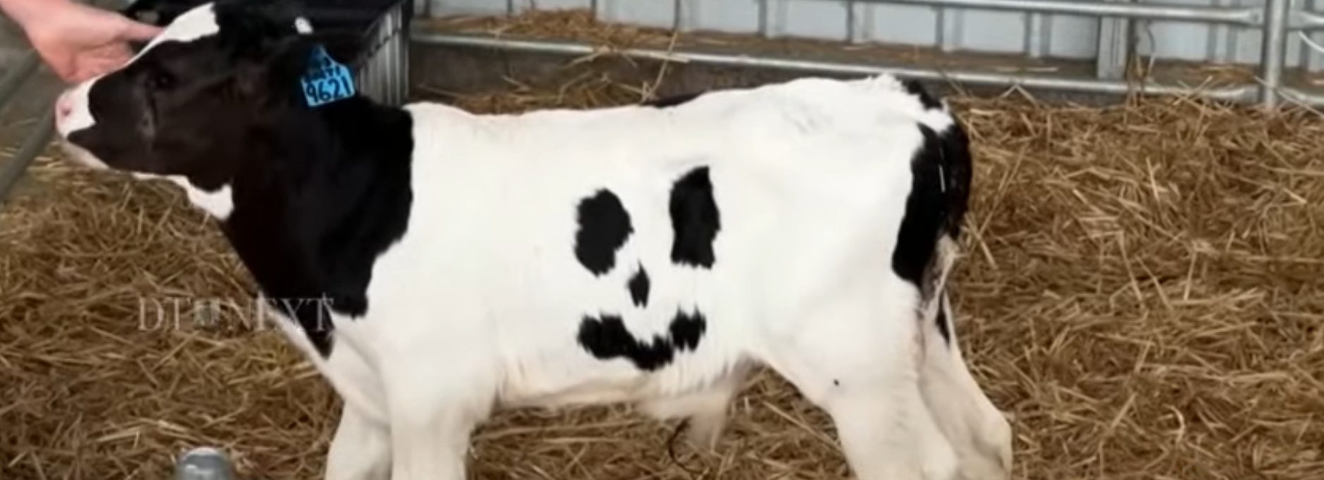 Ein Kuhbaby in Australien hat mit seinen schwarz-weißen Mustern auf dem Fell, die verblüffend an ein Smiley-Gesicht erinnern, für Furore gesorgt.