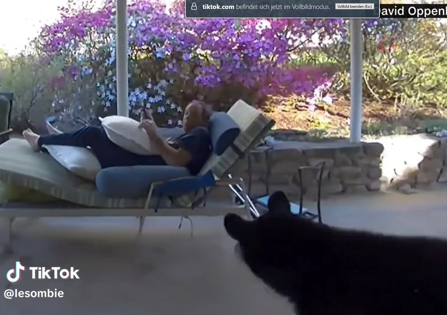 Im weiteren Verlauf des Videos bemerkt der Hausbesitzer die Anwesenheit des Bären - was den pelzigen Eindringling dazu veranlasst, sofort den Kopf zu heben. Beide startten sich kurz an, bevor der Bär wieder von der Terasse flüchtete. Es ist nicht das erste Mal, dass er und der Bär sich auf engem Raum begegnen. "Gut, dass wir uns schon kennen", sagte Oppenheimer und erzählte, wie der neugierige Nachbarsbär oft seinen Müll durchwühlte - und auch Futter aus seinem angeblich bärensicheren" Vogelfutterhäuschen gestohlen hat.