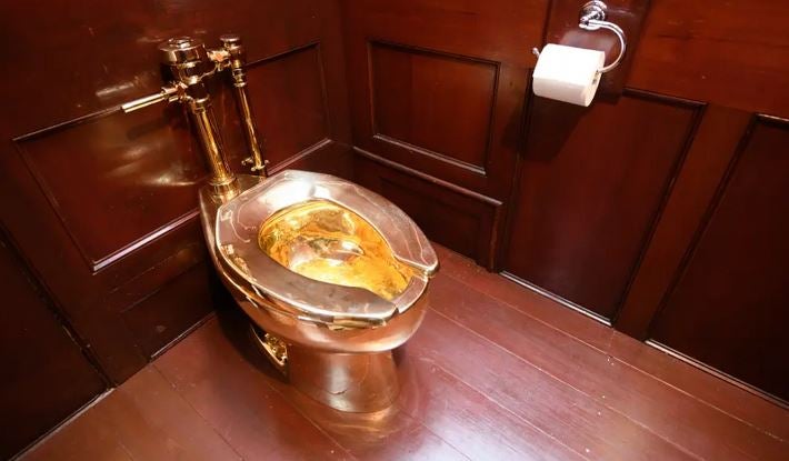 Breaking: 7 individuals nabbed by police for allegedly heisting a $6M golden toilet dubbed 'America.' The 18-karat loo, once exhibited at NYC's Guggenheim Museum, caused a stir when it vanished 4 years ago from Winston Churchill's childhood residence, Blenheim Palace. ???????????? pic.twitter.com/vm6mJKRsG4