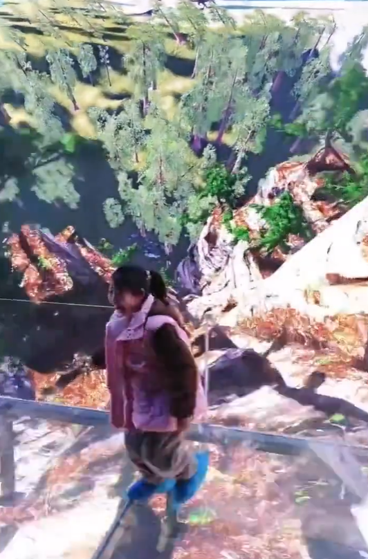 Worum geht es: Personen stehen an einer Glaswand und bekommen ein Video einer 'virtuellen' Achterbahnfahrt vorgespielt. Die Grafik scheint nicht auf dem höchsten Niveau zu sein, dennoch ist es für viele Gäste zu viel und sie treten lieber einen Schritt zurück.