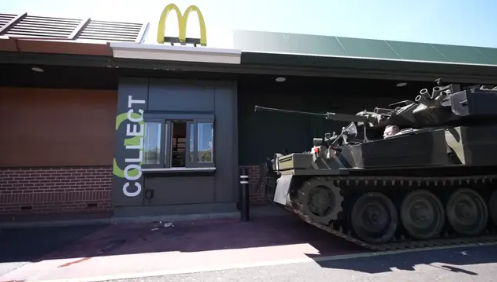 Eddie Hall, bekannt als einer der stärksten Männer Europas, lies sich mit einem Panzer im Drive-Through einer McDonald’s-Filiale blicken.
