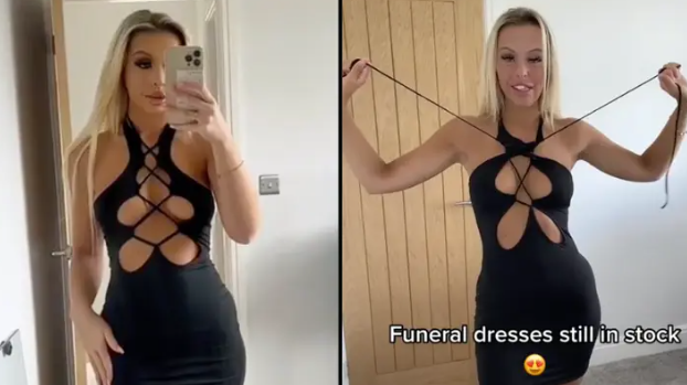 Die kleine britische Bekleidungsmarke Edgy Little Pieces postete eine Reihe von TikTok-Videos, in denen eine Frau das neue Kleidungsstück vorführt. In einem der Videos sagt die Frau: "Hallo, meine Damen, wir haben so viele Anfragen für Beerdigungskleider bekommen, und wir haben dieses Teil erst heute bekommen."
