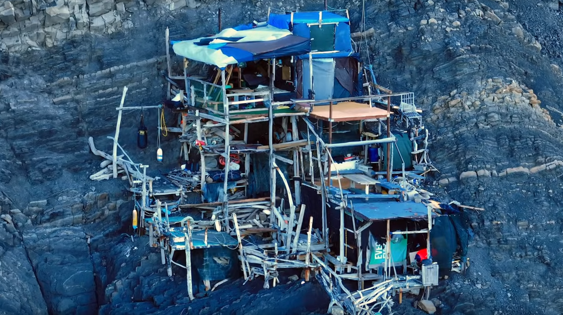 Mit mehreren Zimmern, verteilt über drei Ebenen an der steilen Felswand, ist dieses provisorische Refugium ein wahrer Anziehungspunkt für Abenteurer und Neugierige. Neben Holz und Seilen entdeckte man dort einen mysteriösen Raum, einen Boxsack, alte Bojen und verwitterte Schilder. Ein einsamer Holzstuhl, der dem majestätischen Pazifik zugewandt ist, sorgt für Fragen über die Widerstandsfähigkeit dieses Ortes bei Stürmen und hohem Seegang.
