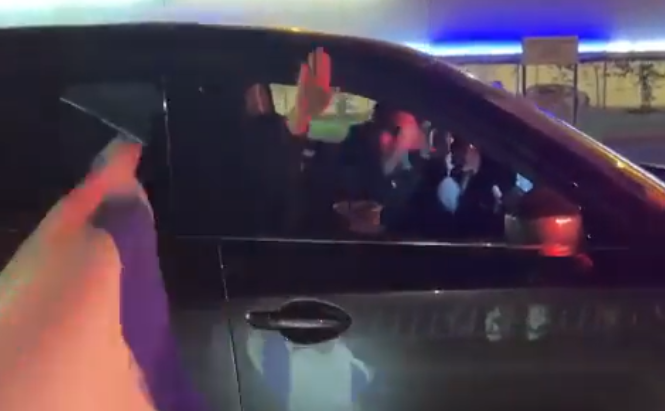 Beverly Hills, CA - car driving by a pro Israel rally yesterday stopped to shout “Heil Hitler” then proceeded to throw up a Nazi salute (caught on camera).